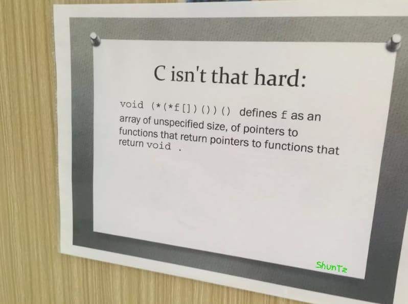 Указатели великолепны - они предоставляют вам доступ к памяти, помогают сократить время выполнения вашей программы, используются для создания сложных структур данных (таких как деревья, связанные списки и т. Д.) И так далее. Тем не менее, не все, что блестит, - золото - указатели на самом деле представляют собой опасные «разновидности», которые могут привести к таким проблемам, как сбои программы, повреждение данных, ненужная сложность кода ( просто взгляните на картинку выше!) и сложные процессы отладки. Из-за всех этих проблем некоторые языки программирования (например, Java) вообще не имеют типов переменных-указателей (у них есть что-то довольно близкое, но не совсем то же самое - мы рассмотрим все это в конце этой части).