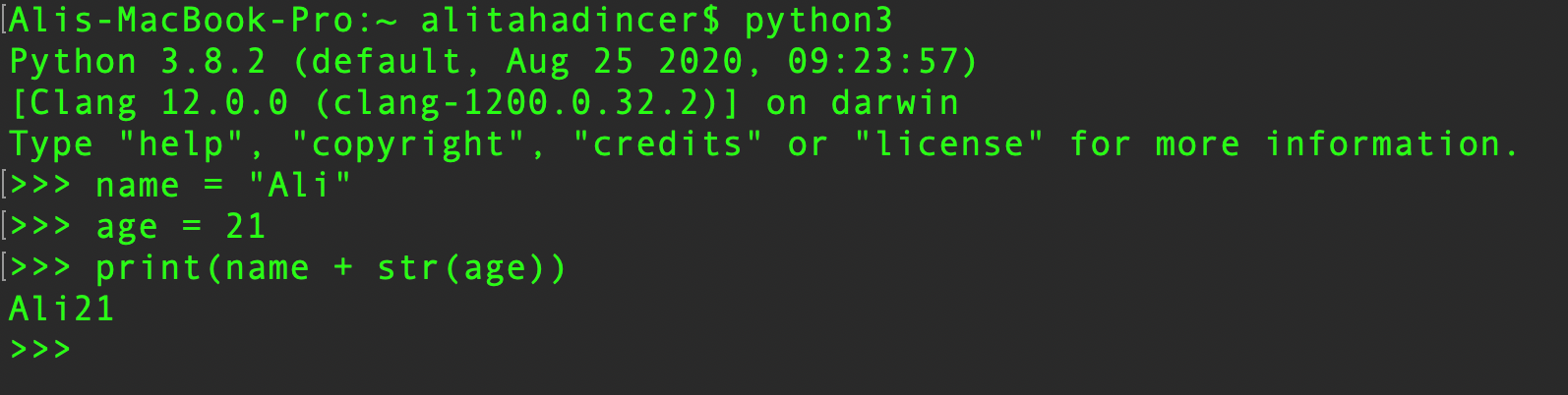 Прежде чем продолжить, я хочу представить вам интерпретатор Python! Это специальное приложение, которое можно запустить в командной строке на вашем компьютере! Но что это значит? Я не хочу влезать в установочную часть Python, особенно в Windows, так как это просто загрузка .exe файла и его запуск. В любом случае, операционные системы macOS и Linux поставляются с предустановленным интерпретатором Python, который вы можете легко запустить, открыв терминал и набрав следующее: