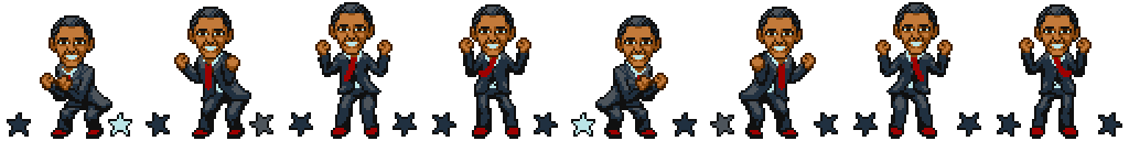 Я нашел в сети гифку с рисунком Обамы, который мне очень понравился, и он дополнит дизайн шрифта видеоигры, который я искал. Я использовал EZgif, чтобы превратить гифку в лист спрайтов, чтобы я мог использовать разные версии мультфильма.