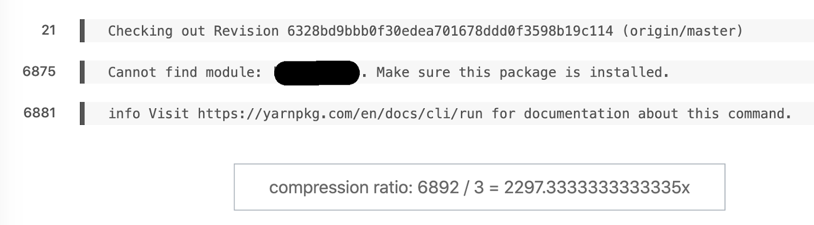 Другой пример: эта сборка произвела 6044 строки, но в отчете осталась только 171. И основная проблема всплыла почти сразу на строке 4036.