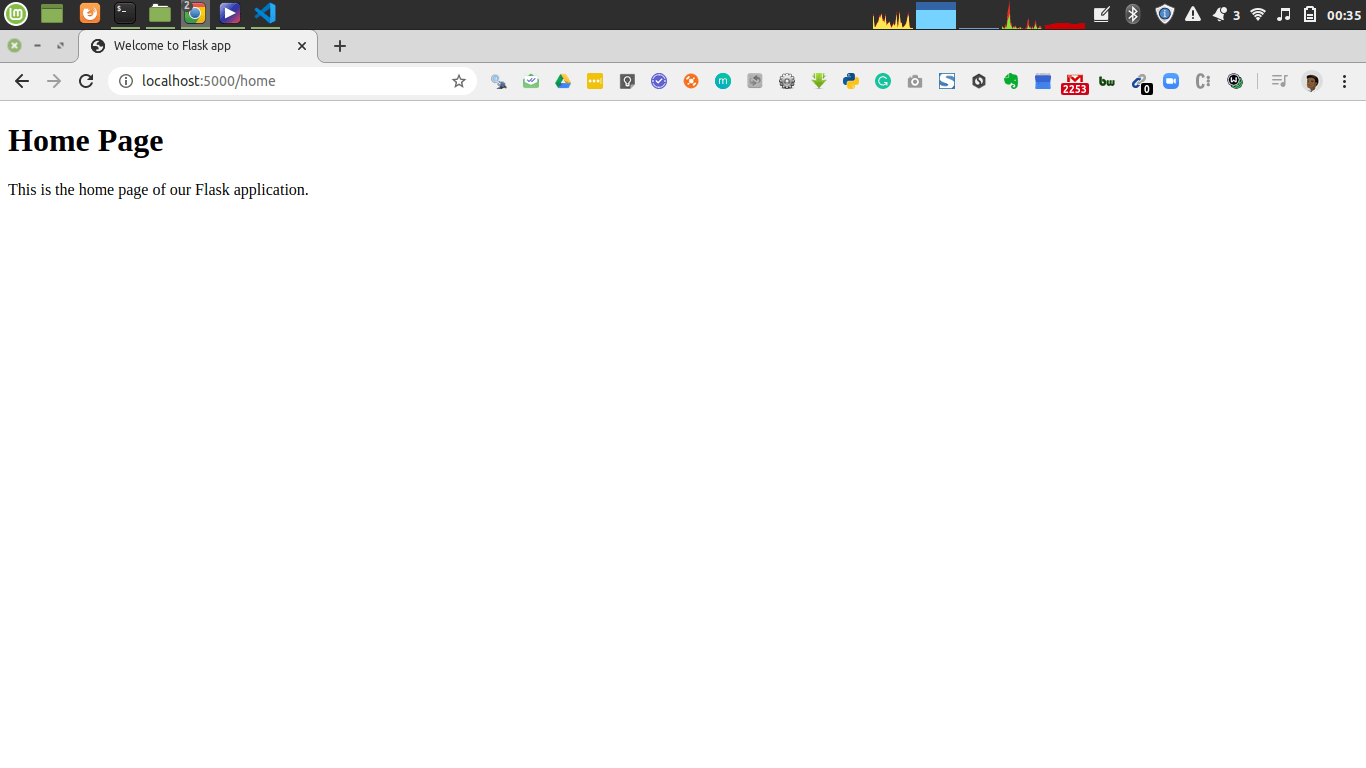 Перейдите по адресу localhost: 5000 / home, чтобы увидеть свое приложение Flask.