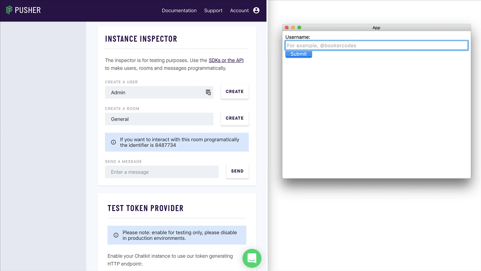 Chatkit имеет два основных понятия: Пользователи и комнаты.