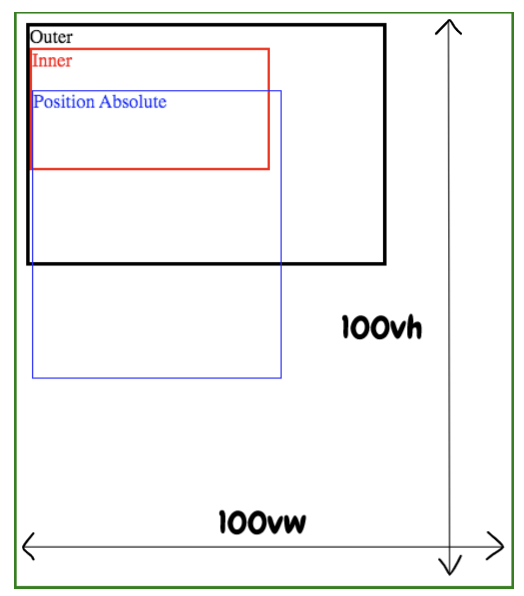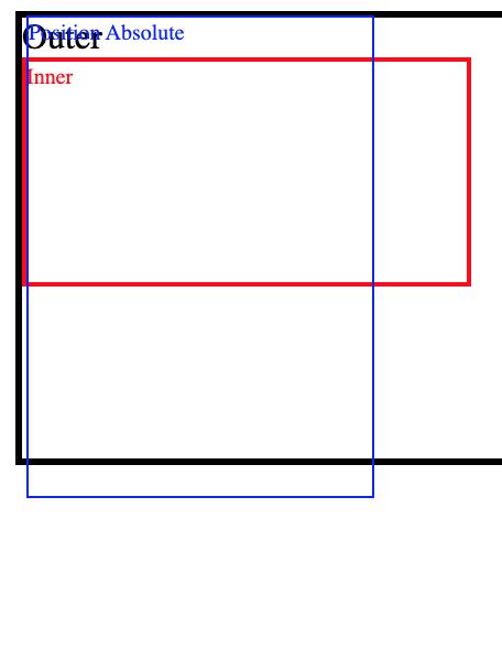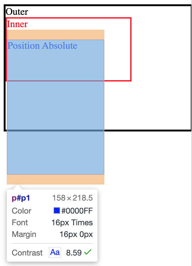 Теперь позиция outer равна static, что является значением по умолчанию. Если ни один из родительских элементов не имеет значения, отличного от static, элемент absolute, в данном случае p1, относится к области просмотра.