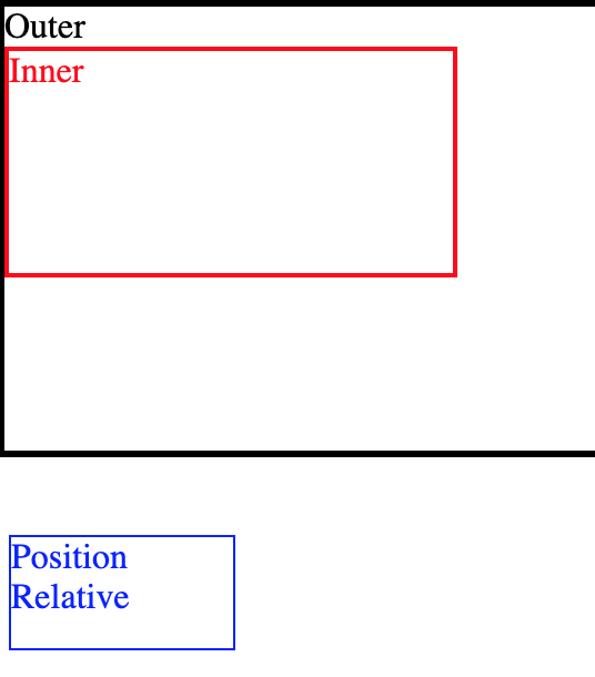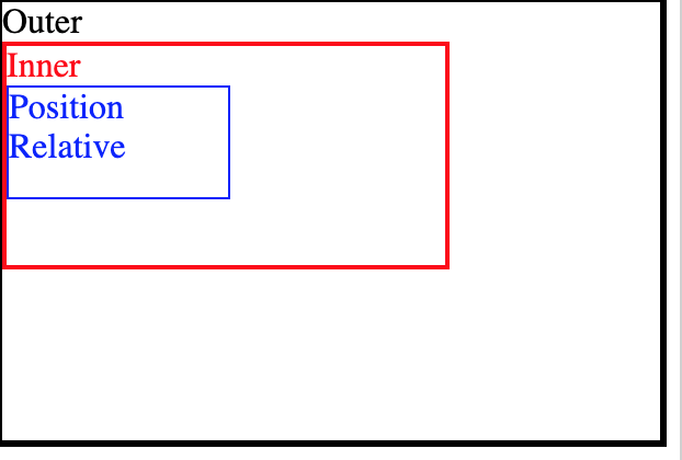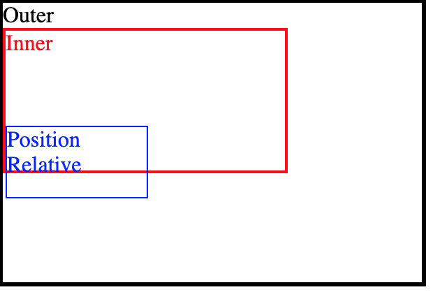 relative элементов следуют обычному потоку DOM. Они всегда ссылаются на CB родительского элемента для размеров и позиций (top, left и т. Д.). Однако они ссылаются на позицию своего собственного CB, которая включена в поток DOM родительского элемента для начальной позиции.