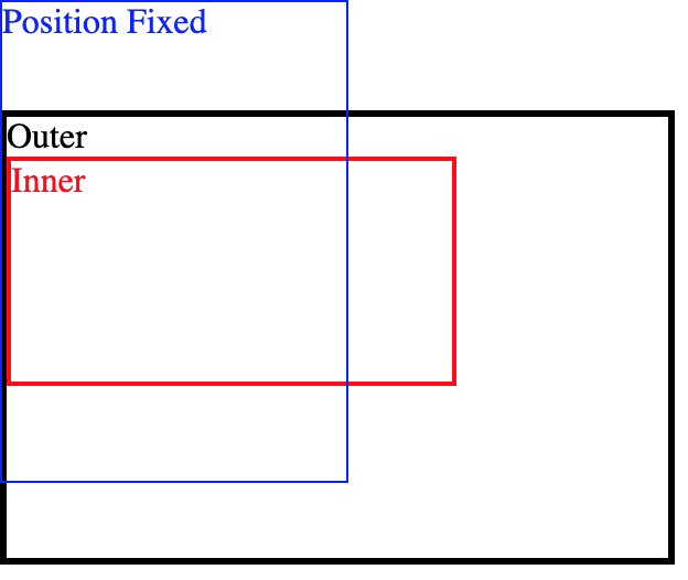 В этом примере outer смещен сверху на 50 пикселей, а left и top установлены на 0 для position: fixed.