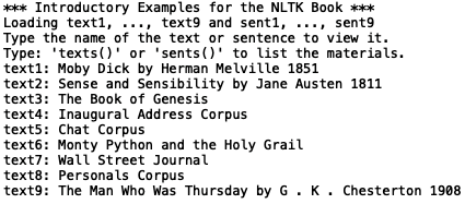 Затем давайте импортируем все книги, доступные в наборе инструментов для естественного языка: