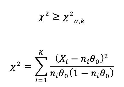 Поэтому мы хотим проверить нулевую гипотезу Ho: θ1= θ2 ...= θK = θ0