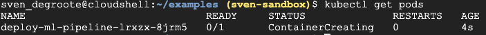 Как только этот контейнер будет запущен, он начнет развертывание компонентов Kubeflow Pipelines в кластере Kubernetes в пространстве имен kubeflow.