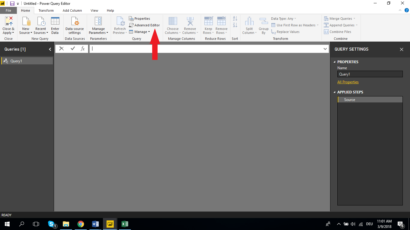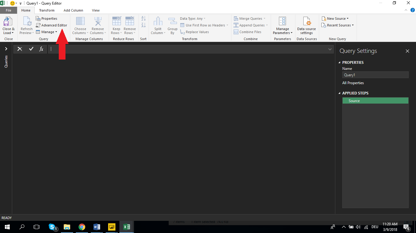 Выберите Получить данные › Из других источников › Пустой запрос.