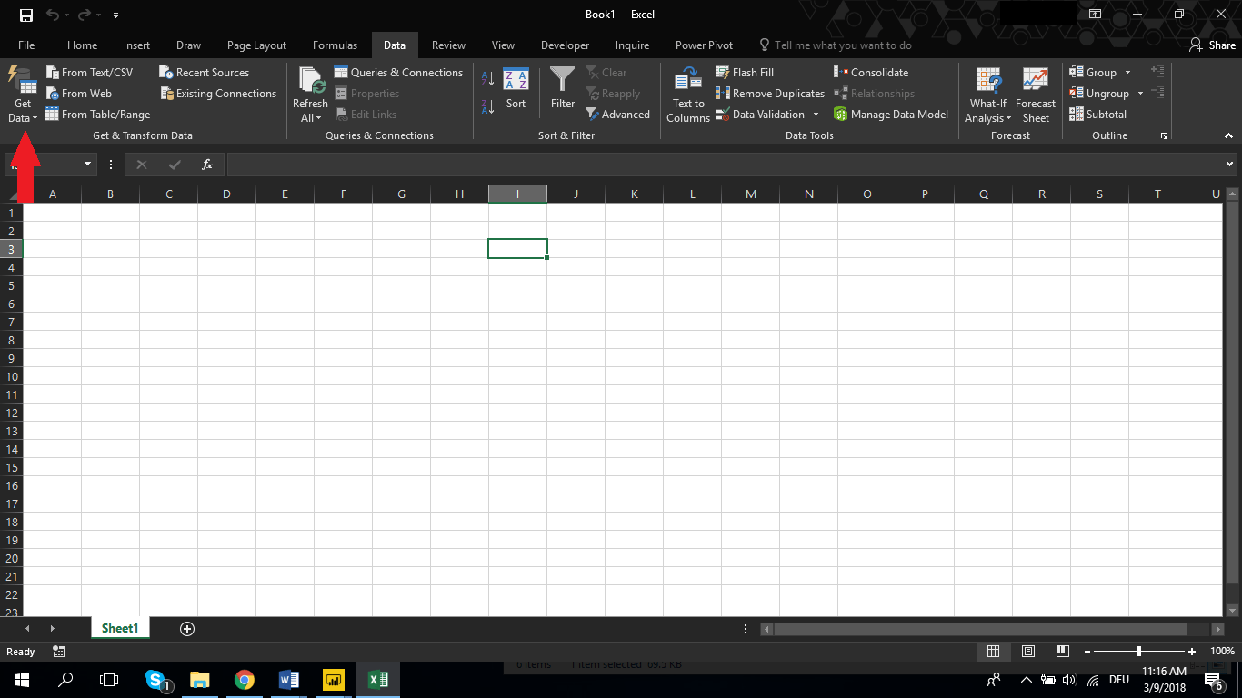 Давайте откроем новую книгу Excel. По умолчанию вы увидите главную ленту. Перейдите на вкладку «Данные». Если вы не видите вкладку «Данные», посмотрите предыдущее видео, в котором объясняется, как правильно настроить Excel (для пользователей Power BI: по большей части вы можете следовать моему курсу на основе Excel, я могу создать отдельный курс обучения, ориентированный на ребята, если нужно).