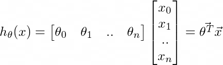 Для нашего удобства мы добавляем нулевую особенность x, которая всегда равна 1. Следовательно, функция гипотезы принимает вид
