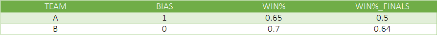 На данный момент без какой-либо другой информации, кроме A / s B в финале, вы, естественно, выиграете команду A. Позвольте нам внести больше информации.