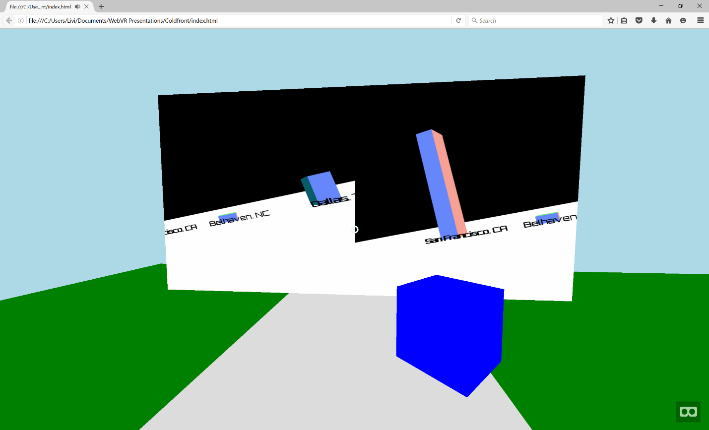 В прошлый четверг я имел честь говорить о VR Web, теме, близкой и дорогой моему сердцу, на Coldfront, однонаправленной конференции, посвященной интерфейсу, в Копенгагене, Дания. Несмотря на то, что я боролся с остатками особенно ужасной простуды, мой доклад в Coldfront был одним из моих любимых, которые я когда-либо произносил. Почему? Публика была замечательная, организаторы замечательные, но что меня действительно взволновало в этом выступлении, так это то, что я написал это с помощью A-Frame.