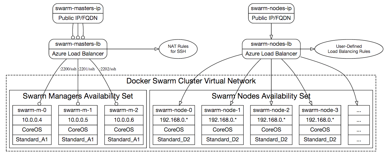 Теперь вы можете подключиться к управляемым узлам Swarm по SSH, используя доменное имя или общедоступный IP-адрес swarm-lb-masters. Вы можете получить полное DNS-имя из выходных данных развертывания.