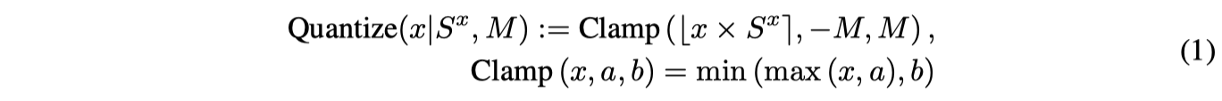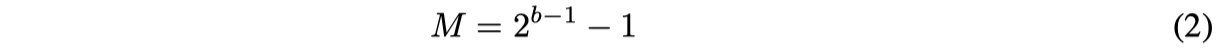 Чтобы понять эту формулу, Sx — это коэффициент масштабирования квантования для входных данных x, а M — максимальное квантованное значение. При квантовании до 8 бит M равно 127, потому что b равно 8.