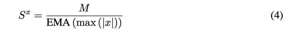 а коэффициент масштабирования активаций рассчитывается на основе экспоненциальной скользящей средней (EMA) для плавного получения скользящей средней:
