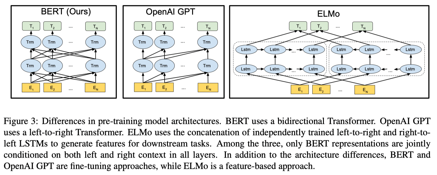 BERTобозначает Bоднонаправленный Eкодер Rпредставления от Tпреобразователей. Из его названия мы знаем, что, во-первых, он двунаправленный: BERT предварительно обучает данные как из левого, так и из правого контекста, что отличается от предыдущей модели ELMo или GPT, модели которых используют только левый или правый контекст.