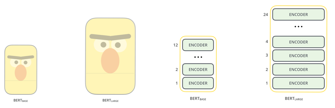 Во-вторых, BERT состоит из энкодеров: его модельная архитектура представляет собой многоуровневый энкодер Transformer. В статье представлены модели двух размеров: BERT BASE с 12 слоями и BERT LARGE с 24 слоями. Именно BERT LARGE добился самых современных результатов.