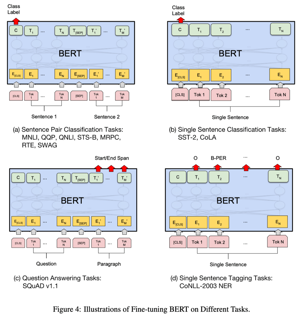 Последний шаг – тонкая настройка. Мы просто подключаем определенные входы и выходы последующих задач к BERT и точно настраиваем все параметры от начала до конца.
