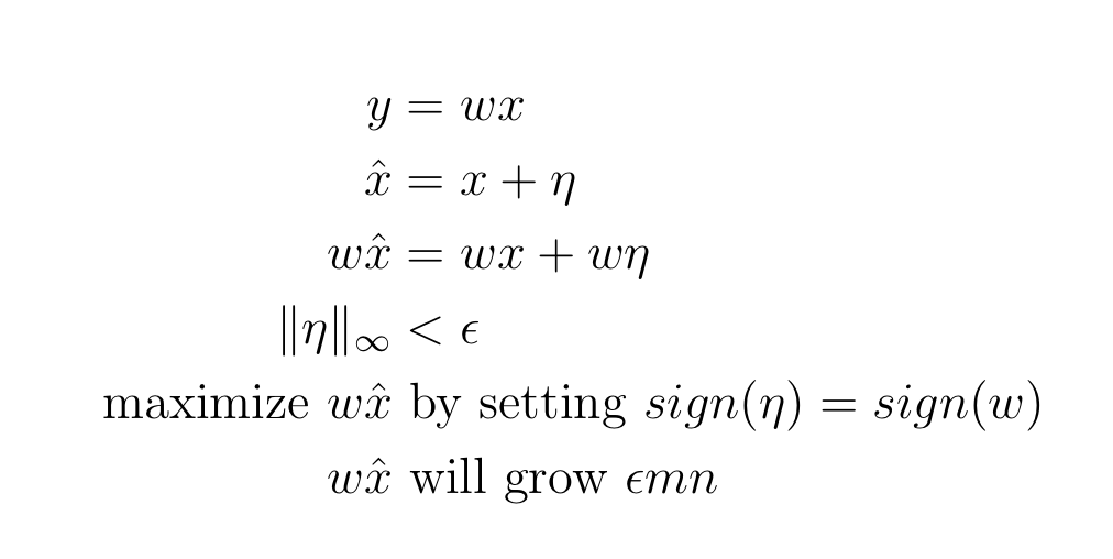 Из приведенного выше уравнения видно, что даже если мы ограничиваем величину возмущения ниже ε, пока у нас есть достаточная размерность m, воздействия будет достаточно, чтобы повлиять на нашу модель. Таким образом, состязательный пример на основе возмущений хорошо работает с набором данных изображения, учитывая большой размер входного измерения по сравнению с любым структурированным набором данных.
