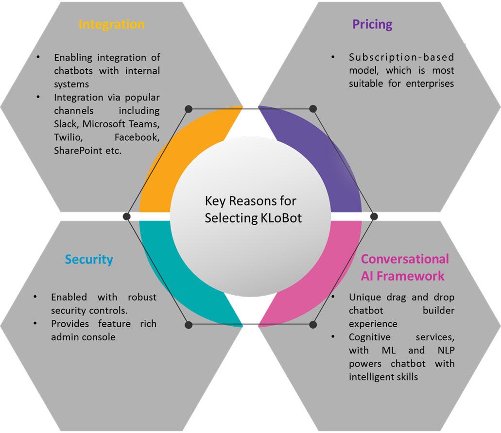 Определение ключевых функций и функций, необходимых для чат-бота, помогает предприятиям эффективно вести свой бизнес. Оценка навыков помогает предприятиям выбирать правильных чат-ботов, которые лучше соответствуют потребностям их бизнеса. Интеллектуальные многоразовые навыки KLoBot помогают компаниям автоматизировать рутинные задачи, отправлять напоминания, автоматизировать координацию совещаний и выполнять другие сложные задачи. Чат-ботом, созданным на платформе KLoBot, можно управлять из централизованного места с помощью сложных функций, включая речь, понимание языка, преобразование речи в текст, текстовую аналитику и многое другое.