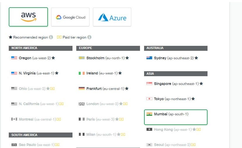 - На этом шаге вам нужно выбрать поставщиков услуг и регион, в котором вы хотите развернуть экземпляр.