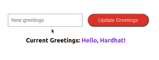 updateGreets()для вызоваsetGreetings()в наш смарт-контракт, - мы используем два общих хука React: