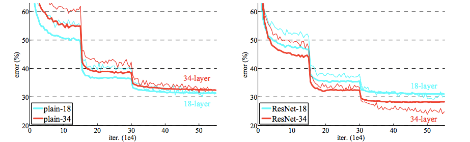 Остаточная сеть: при использовании остаточной сети проблема не в этом, 34-слойная модель работает лучше, чем 18-уровневая.