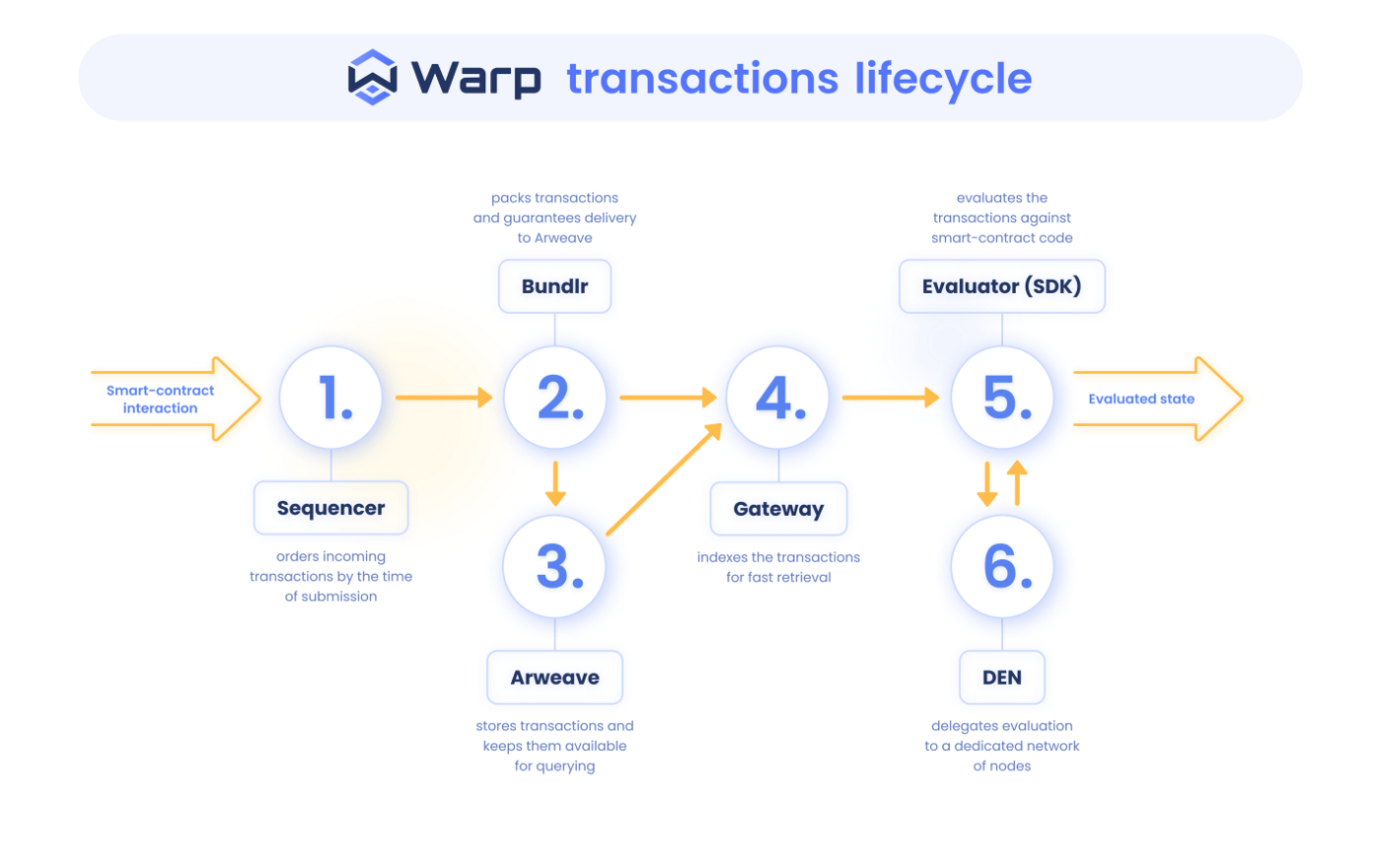 - Транзакции могут оцениваться либо через SDK Warp, либо делегироваться в распределенную сеть выполнения (DEN).