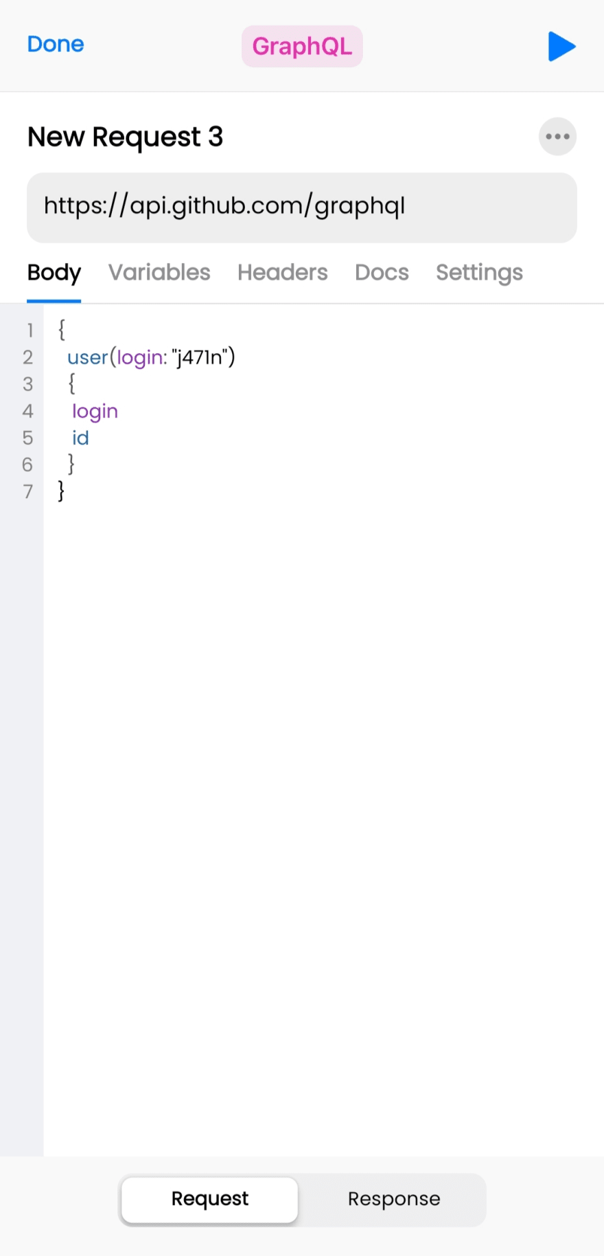 Я собираюсь использовать GitHub API, поэтому поставлю api.github.com/graphql в раздел URL.