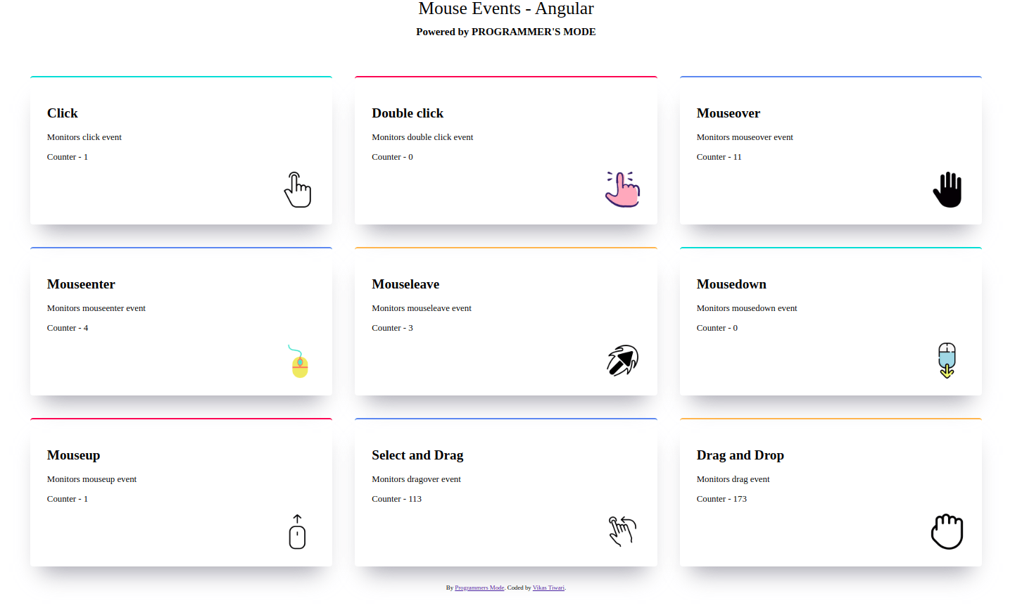 Привет, замечательные люди, надеюсь, у вас все хорошо. В этой статье мы рассмотрим различные типы событий мыши, присутствующих в angular.