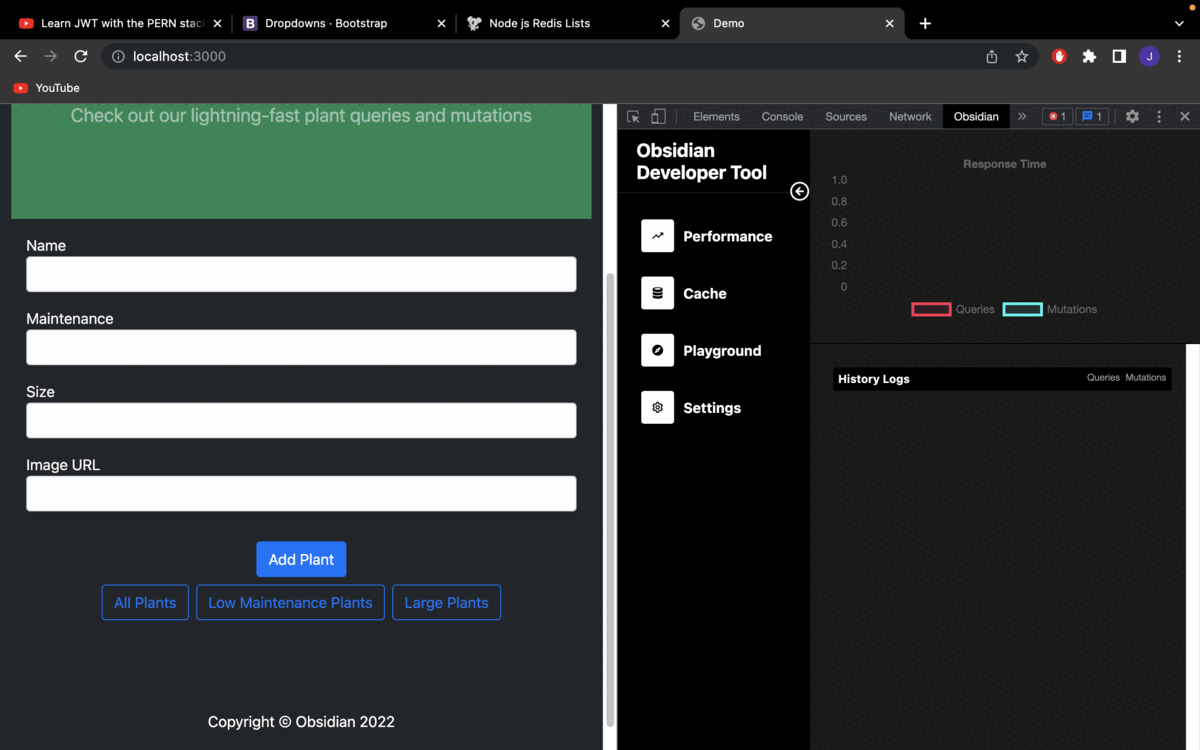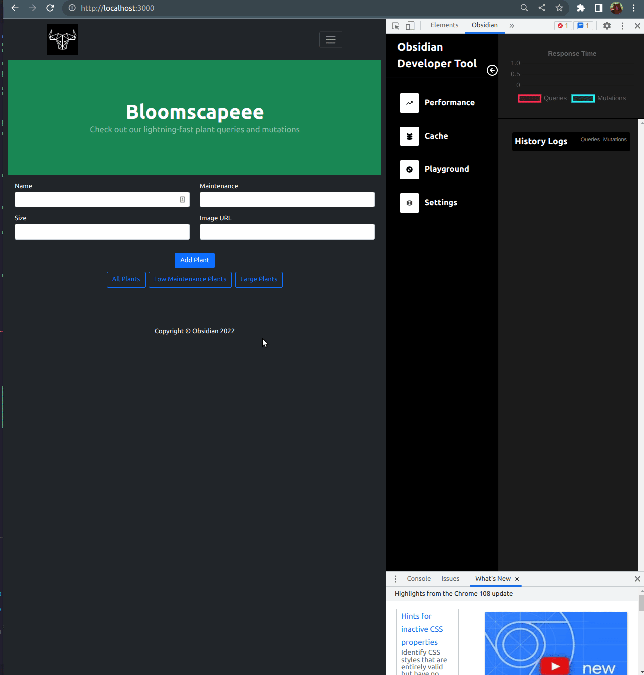 Obsidian Developer Tool — это расширение для Chrome, предназначенное для приложений, использующих Obsidian. Короче говоря, это расширение дает пользователям возможность визуализировать показатели производительности запросов и кеша, отправлять динамические запросы и мутации, а также просматривать и удалять данные из кеша браузера.