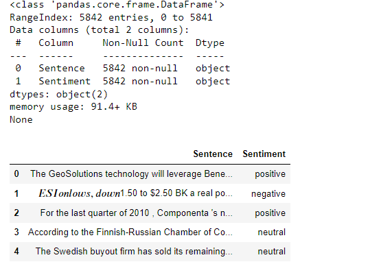 Во-первых, нам понадобится набор данных. Мы будем использовать данные Financial Sentiment Analysis от Kaggle. Набор данных содержит два поднабора данных (FiQA и Financial PhraseBank), объединенных в один файл CSV. Данные здесь предоставляют финансовые предложения с метками тональности.