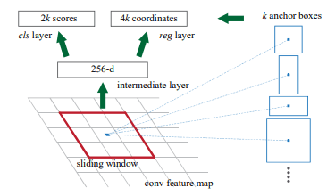 Чтобы сгенерировать предложения по регионам, мы перемещаем небольшую сеть по сверточной карте объектов, выводимой последним общим сверточным слоем. Эта небольшая сеть принимает в качестве входных данных пространственное окно n × n входной сверточной карты признаков. Каждое скользящее окно сопоставляется с функцией более низкого измерения.