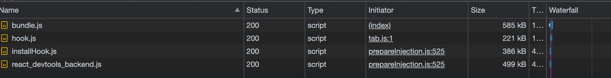 `React.lazy`, поэтому react не будет импортировать компонент, пока он не будет использован. Webpack поддерживает специальный синтаксис комментариев, называемый «магическими комментариями», который позволяет вам называть разные фрагменты. Пакеты, которые мы загружаем, работают нормально, как есть, но они не очень удачно названы.0.chunk.jsи1.chunk.jsмогут выполнять свою работу, но они не подходят для отладки ошибок в рабочей среде.