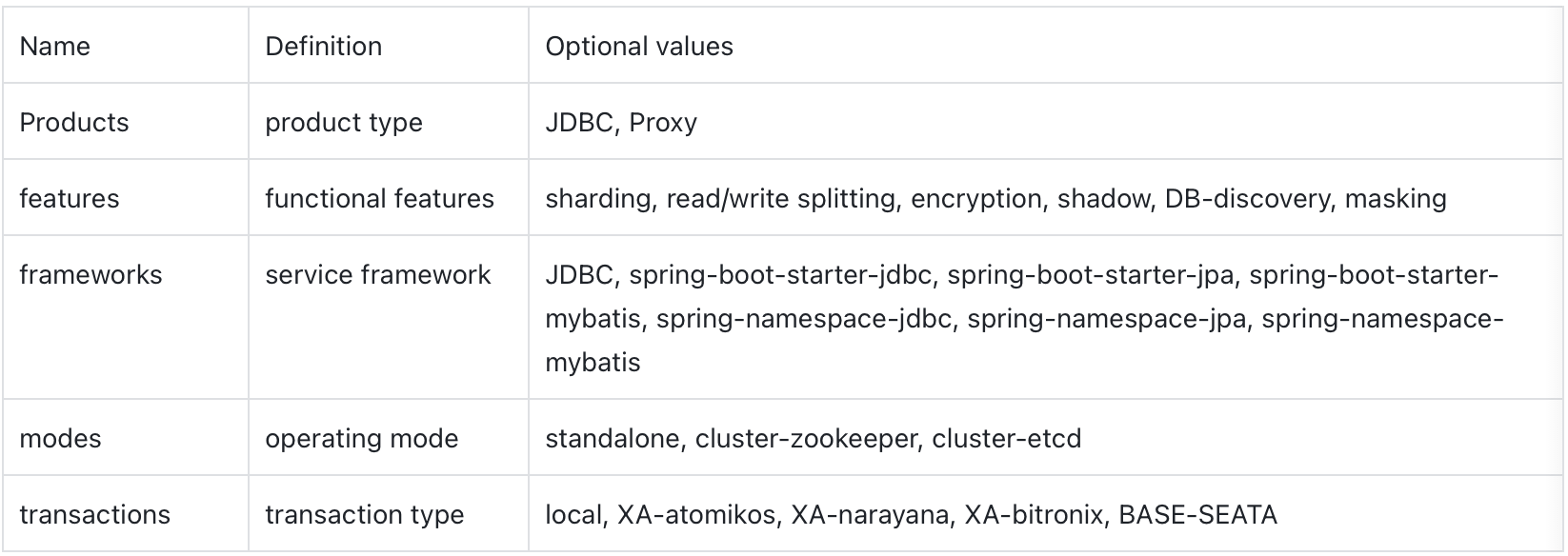 Кроме того, мы разделили функциональные возможности на категории, такие как шифрование и дешифрование, разделение чтения/записи и разделение базы данных и таблиц. Поддерживаемые типы конфигурации подробно описаны в таблице 1.
