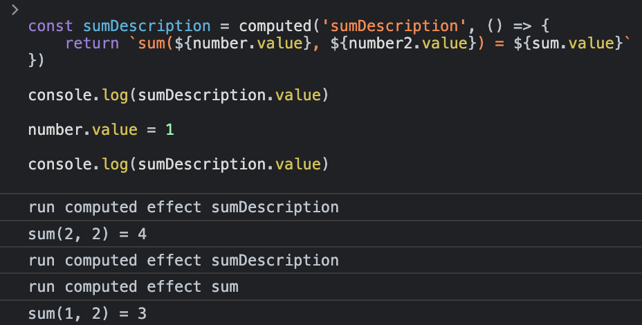 console.log(sumDescription.value) // sum(1, 2) = 3