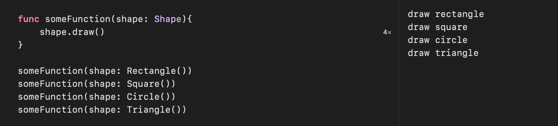 Мы можем использовать взаимозаменяемые классы Square, Rectangle, Triangle и Circle, поскольку они наследуются от класса Shape.