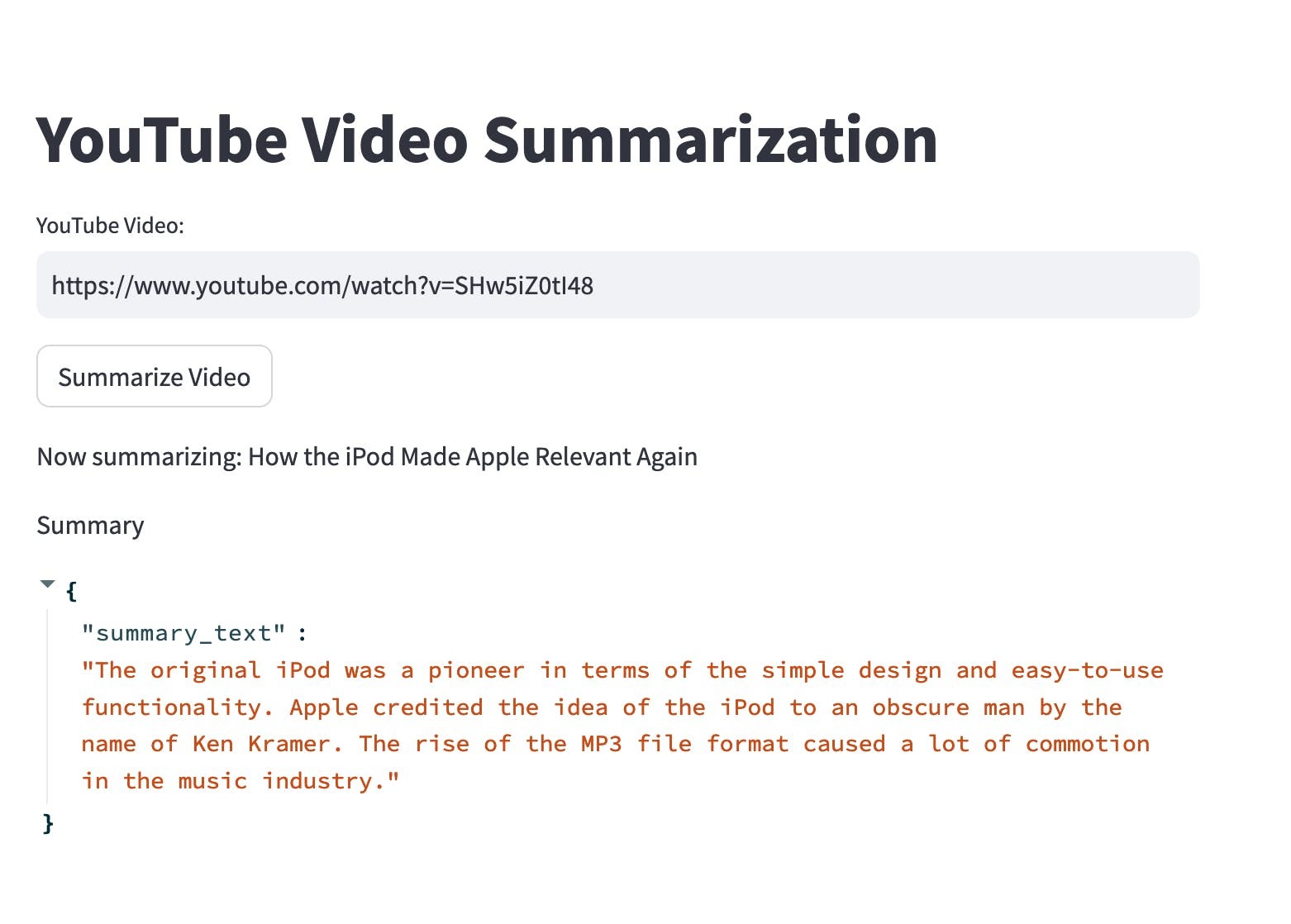 st.title('YouTube Video Summarization')