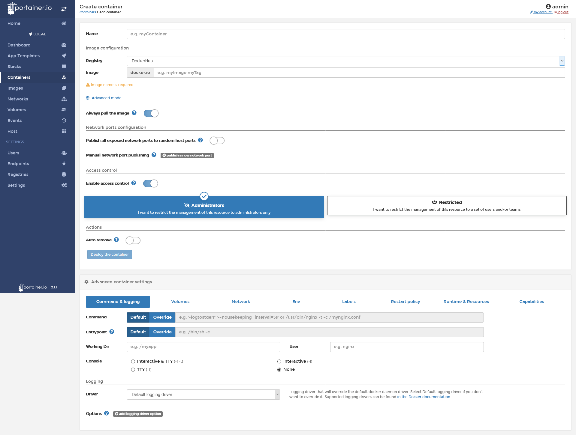 Итак, начнем с входа в Portainer. Откройте экземпляр докера и перейдите в представление контейнера.